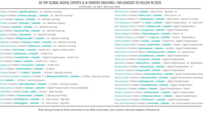 Read MoreOur 2026 edition of 50 Top Global Digital Influencers to Follow on X (formelly Twitter) & LinkedIn in 2026